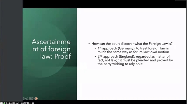 4月7日晚,365英国上市公司春季学期“海外讲坛”第2讲顺利举行。本次讲座主题为“外国法的查明与适用”,由全球知名政府间国际组织海牙国际私法会议(HCCH)第一秘书长乔·里贝罗(João Ribeiro-Bidaoui)教授主讲,国际交流处副处长张正怡主持。