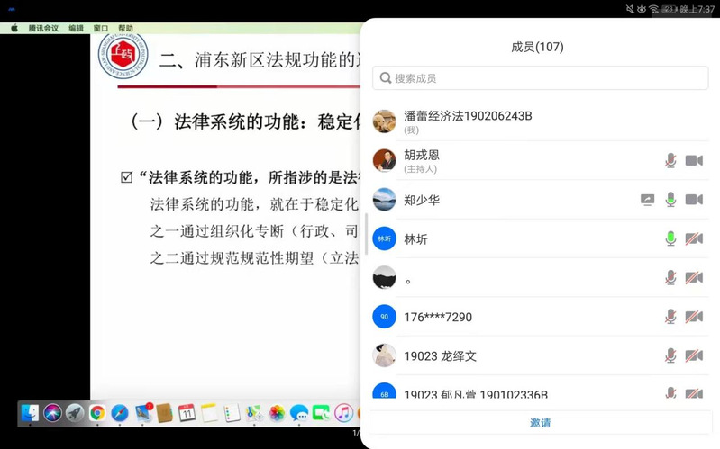 4月11日晚,由教务处、经济法学院主办的“名师讲坛”第3讲开讲。国家百千万人才工程入选者、“有突出贡献中青年专家”称号获得者、教育部法学类专业教学指导委员会委员、我校副校长郑少华教授,通过线上会议形式,为广大师生作“论浦东新区法规的功能”主题讲座。讲座由经济法学院院长胡戎恩教授主持,校内外共100多名师生参加。
