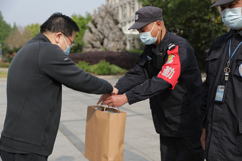 在校园的每个角落,都有上政人坚守的身影,他们是辛勤的战疫者,最美的劳动者。5月1日上午,校党委书记夏小和,校党委副书记刘刚,副校长郑少华等一行看望慰问学校疫情防控指挥人员、医护人员、学生志愿者、后勤保障人员等,向奋战在校园疫情防控一线的全体师生员工致以诚挚问候和崇高敬意,并送上节日礼包。
