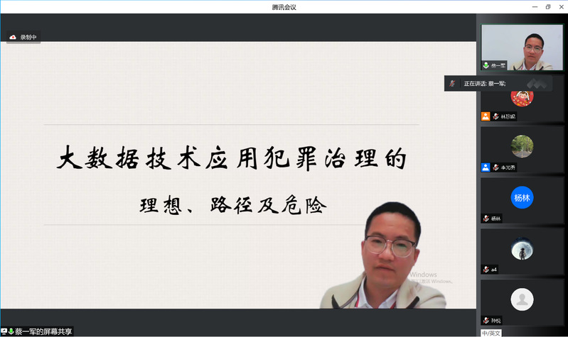 5月3日晚,由教务处和警务学院主办的“名师讲坛”在线讲座第10讲——“大数据技术应用犯罪治理的理想、路径及危险”顺利举办。本次讲座主讲人为警务学院院长蔡一军教授,由警务学院李光勇副教授主持,近200名校内外实务专家和师生参与讲座。