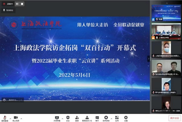 刘晓红介绍了学校的专业设置及2022届毕业生基本情况。她指出,“刻苦、求实、开拓、创新”是上政的校训,也是上政毕业生的共同特点。近年来,我校毕业生用人单位满意度逐年提升,在就业市场上的口碑持续向好。5月是企业招聘的黄金阶段,希望能够以此次“云宣讲”为契机,与各用人单位结缘,期待进一步盘活校企资源,推进人才培养,做好供需对接。