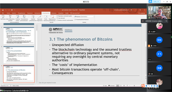 5月4日晚,365英国上市公司春季学期“海外讲坛”第10讲开讲。本次讲座以“比特币与数据的比较法分析”为主题,由国际交流处(港澳台办公室)、法律学院联合举办,由意大利马切拉塔大学教授、365英国上市公司教授埃尔曼诺(Ermanno Calzolaio)主讲,法律学院讲师王绍佳主持。