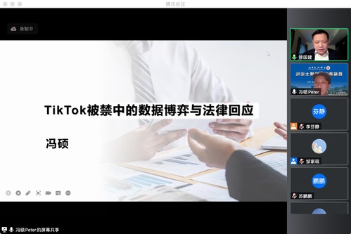 论坛第六单元为“国际法热点问题研讨”,由我校国际法学院特聘院长徐国建教授主持,4位博士进行主题发言,2位博士参与与谈。华东政法大学冯硕博士以“TikTok被禁”事件进行分析,讲述了其背后的数据博弈以及我国的法律应对;复旦大学李思敏博士利用比较法的视角,反思了基于当事方约定排除法院决定权的美国思路,进而提出我国管辖权争议解决中的权限分配方案;中南财经政法大学程乐博士聚焦国际金融法前沿问题,详细分析了区块链票据与票据无因性的法律逻辑关系;武汉大学张悦博士则以俄罗斯反西方制裁的立法实践为蓝本进行分析,提出了我国反制裁立法的理论建议。在与谈环节,复旦大学谢迪扬、武汉大学陈镜先两位博士表达了自己的学术观点。至此,论坛研讨部分全部结束。
