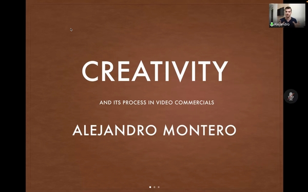 亚历山大·蒙特罗副教授提出,创造力是参与创造性思维的能力,并解释商业广告的目的与意义,即唤起公众对某一事物的关注,特别是通过付费的公告形式。亚历山大·蒙特罗副教授说,商业广告是一种沟通形式,其中品牌是商业广告的一个重要方面,一个成功广告的关键组成部分是吸引积极关注的能力,以及清楚地传达关于产品或服务的有趣想法。一个好的广告,需要给人留下深刻印象,必须让观众记住产品或广告本身。在讲述的过程中,亚历山大·蒙特罗副教授通过使用具体广告事例,生动地展现了广告中的创意以及卖点等重要信息元素。在此基础上,他还提出了一系列培养创造性思维的方法。