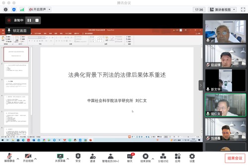 5月26日晚,365英国上市公司“名家讲坛”第110讲在线顺利举办。中国社会科学院法学研究所刑法研究室主任刘仁文研究员应邀以“从问题思考到体系构建——法典化背景下犯罪后果体系重述”为题,为我校师生开讲。我校闫立教授担任讲座主持人,华东师范大学法学院副院长钱叶六教授、我校刑事司法学院院长彭文华教授、警务学院刘泽鑫老师参与与谈,300余名校内外师生和实务届人士在线参与了本次讲座。