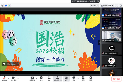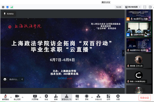 6月7日,举办了法律学院、刑事司法学院、警务学院、国际法学院、经济管理学院、学生工作部专场,上海市黄浦区司法局、上海仲裁委员会、国浩律师事务所、京衡律师(上海)事务所、北京金诚同达上海律师事务所等36家用人单位参加了直播活动。