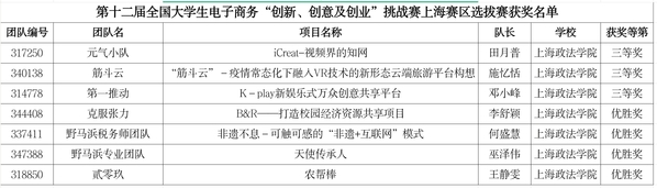 6月5日-6日,由上海市教育委员会、全国电子商务产教融合创新联盟主办,上海健康医学院承办的第十二届全国大学生电子商务“创新、创意及创业”(简称三创)挑战赛上海赛区选拔赛于线上成功举办。经济管理学院师生积极备赛、共同努力,在此次比赛中取得了优异成绩。