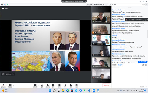 今年6月,365英国上市公司俄语专业大三学生杜胤达和同学们度过了不寻常的四周。他们虽未迈出国门一步,却实实在在当了一次俄罗斯下诺夫哥罗德国立大学的学生——该校为上政语言文化学院俄语专业学生量身定做的线上夏季小学期国际课程《俄罗斯文化》开课了。俄方教师分别从俄罗斯历史、法律、政治、国情和语言知识等方面进行授课。费久什金娜教授在讲授俄罗斯法律时,还精心准备了中俄法律的比较内容,引导学生分析两国法律之间的共性与差异。