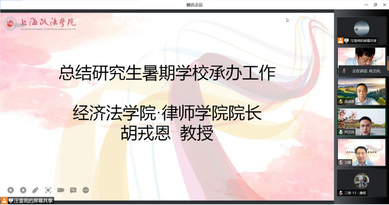 胡戎恩总结了此次研究生暑期学校的承办情况。此次研究生暑期学校紧紧围绕“新全球化,中国法律人机遇、挑战”这一主题,共招收学员80名,开展专家讲座13场、学术讨论2场、学术论坛1场,邀请了16名来自全国学术理论界、司法实务界以及律师实务界三大领域专家学者参与。胡戎恩表示,受疫情影响,今年虽全程采取线上授课研讨模式,但学员们克服了疫情带来的困难,顺利完成了各项学习任务。希望学员们一起站在法治的舞台上,致力于共同进步和发展。