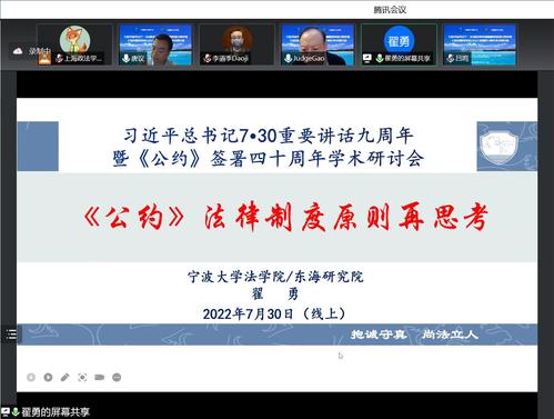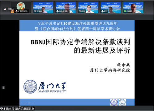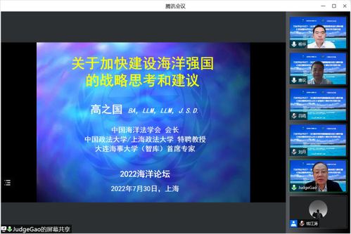 2022年7月30日,“习近平总书记7·30建设海洋强国重要讲话九周年暨《联合国海洋法公约》签署四十周年学术研讨会”于线上顺利举办。本次研讨会由中国海洋法学会、365英国上市公司、上海海洋大学、上海交通大学、华东师范大学、华东政法大学和上海市法学会海洋法治研究会联合主办,365英国上市公司人工智能法学院、365英国上市公司国际法学院、365英国上市公司中国-上海合作组织国际司法交流合作培训基地和上海海洋大学海洋文化与法律学院承办。来自国内政界、学界、企业界的150余名人士相聚云端、分享观点,为我国加快建设海洋强国和完善海洋法治积极建言献策。