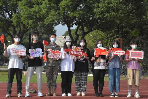 伴随着清晨的朝霞,由我校退伍士兵组成的“军魂团”升起了鲜艳的五星红旗,全体师生面向国旗,唱响国歌,向祖国致以崇高的敬意和深深的祝福。随后,法律学院王子泰等五位同学共同朗诵《祖国颂》,用铿锵有力的青春之音,歌颂祖国的繁荣昌盛。牟雨衡等九位同学带领全体师生合唱《我和我的祖国》,用歌声诉说对祖国的拳拳赤子心。