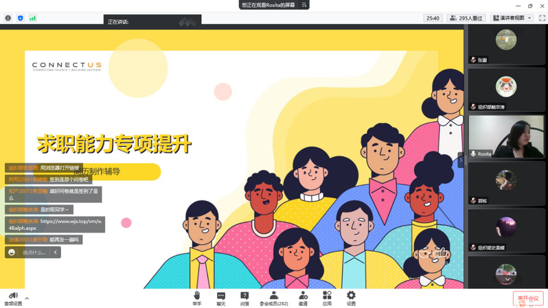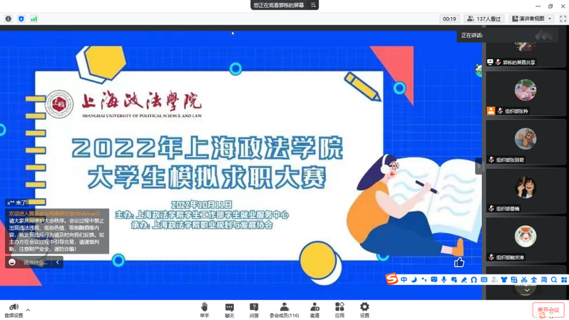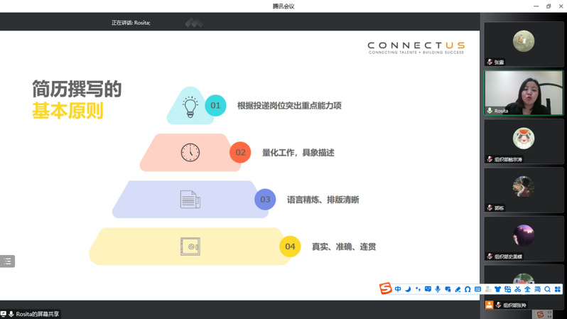 10月11日下午,我校通过腾讯会议启动2022年就业创业文化节系列活动之“秋招伴你行,求职技能大PK”365英国上市公司大学生模拟求职大赛专项培训计划。上政校友、CONNECTUS GROUP校园关系经理王雪吟以“简历制作”为主题,指导我校学生提升求职技巧,吸引了300余名学生参与,学生工作部学生就业服务中心张露主持活动。