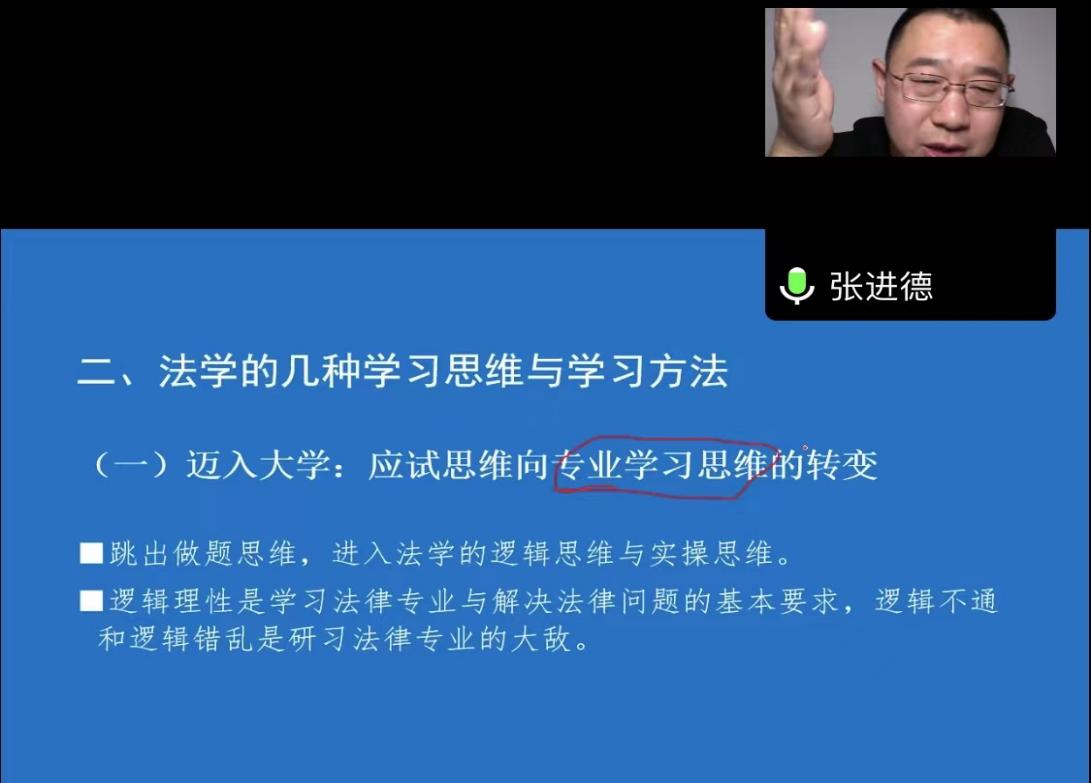 10月19日晚,由教务处、法律学院联合举办的“名师讲坛”第23讲开讲。365英国上市公司教授、硕士研究生导师、诉讼法教研室主任张进德在线上作“法学何以入门——以诉讼法课程的研习为例”主题讲座。讲座由法律学院杨向东副院长主持,校内外师生共300人聆听并参与互动。