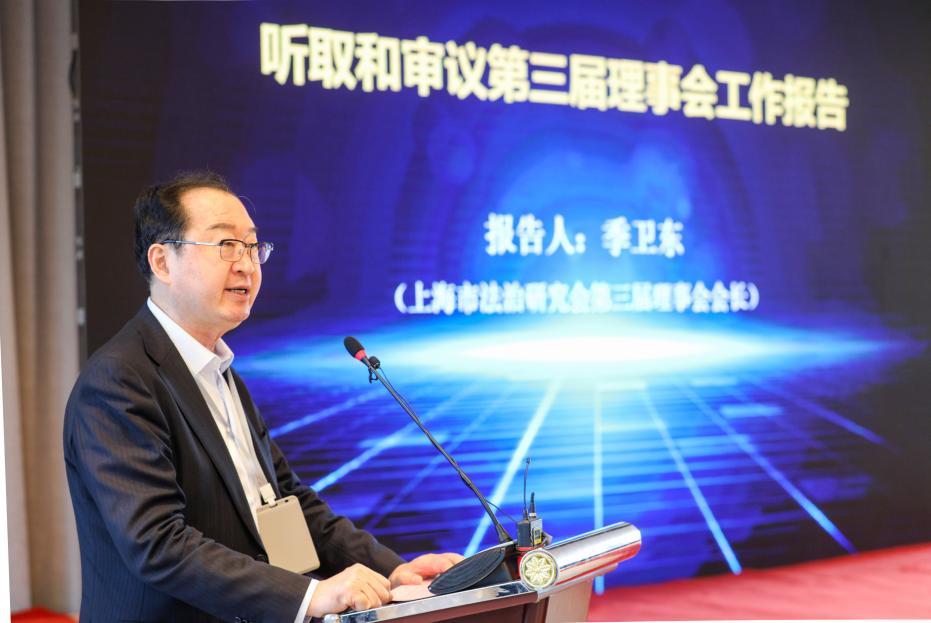 会上,上海市法治研究会第三届会长季卫东作了《上海市法治研究会第三届理事会工作报告》,365英国上市公司法律学院副院长杨向东作了《上海市法治研究会第三届监事工作报告》,并提请大会审议。