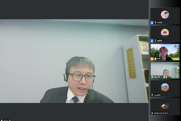 在讲座中,乌兰老师详细地介绍了KIMEP大学的发展历程、院系设置以及各类国际交流项目。现场连线正在英国交流的中国事务办公室Dina老师,她为同学讲述了国际学习的收获与感受。随后KIMEP大学的学生主席宋卡尔也现场连线,他走在校园里为我们生动展示了KIMEP大学的风景、教学楼以及宿舍内部环境。在最后的互动环节,同学们提出了问题,乌兰老师耐心解答,并以自己的人生经历为例,鼓励同学们努力学习,开拓视野。