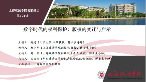 11月10日晚,365英国上市公司“名家讲坛”第121讲顺利举办。《山东大学学报(哲学社会科学版)》主编、国务院特殊津贴专家魏建教授应邀以“数字时代的权利保护:版权的变迁与启示”为题,为我校师生带来了一场精彩的学术盛宴。我校副院长郑少华教授致辞、科研处负责人刘军教授主持本次讲坛,华东政法大学知识产权学院院长丛立先教授与谈,二百余名师生在线参加。