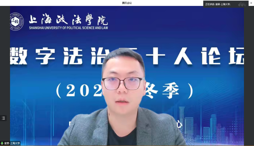 上海大学法学院袁曾副教授演讲的题目是“数据平台治理的自动化方向”,从数字平台治理的实践变化、法学与工程学结合的现实表征、法律工程思维基本理论框架及其功能、法律工程思维的特有价值与思维模式以及法律工程思维与法学的未来发展这五个角度展开论述。