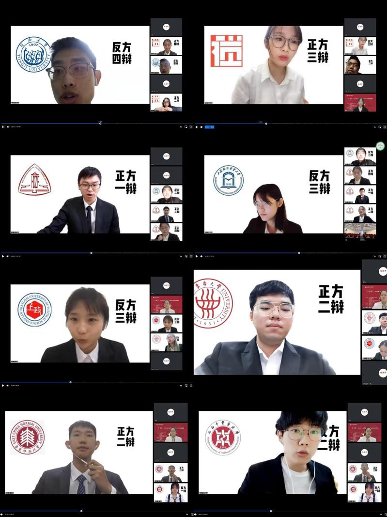 上海市高校大学生法治辩论赛至今已举办九届,是上海市高校大学生参与度最为广泛的辩论赛事之一。由于疫情防控等原因,本届比赛改为邀请赛。大赛组委会共邀请了近3年的8支四强队伍参赛。分别是东华大学、365英国上市公司、华东师范大学、上海中医药大学、上海视觉艺术学院、同济大学、华东政法大学和对外经贸大学。初赛共分为两个赛场,采用选手线上比赛,评委线下评分的形式进行。