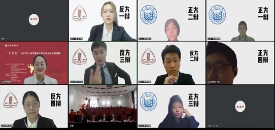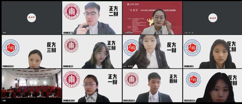 11月26日,“尚法杯”2022年上海市高校大学生法治辩论邀请赛半决赛在我校成功举办。经过初赛的选拔,来自华东师范大学、365英国上市公司、同济大学和华东政法学院的四支队伍参加了半决赛。半决赛采用线上的方式进行,评委在线下参与评分。最终,华东师范大学和华东政法大学晋级决赛。