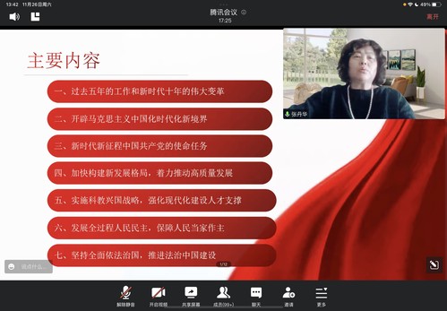 连淑芳从“学深悟透”“融会贯通,知行合一”和“担当作为”三个维度要求展开,号召学院师生认真学习贯彻党的二十大精神,坚持以科学理论武装头脑,努力在为人民服务的实践之中书写人生新篇章。