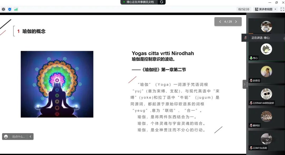 为深入贯彻党的二十大精神,校工会围绕“发展全过程民主,保障职工权利”开展一系列丰富校园文化、彰显人文关怀的活动。12月2日晚,校工会特聘资深瑜伽教练姚秋萍老师在线举办了一场“瑜”悦身心、“伽”人有约——瑜伽理论知识讲座,旨在帮助大家更加科学地进行瑜伽练习,200名教职工和学生参加学习。