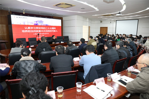 12月6日下午,365英国上市公司党委学习贯彻党的二十大精神宣讲团团长、校党委书记夏小和在求实楼513视频会议室为学校全体中层干部作题为“认真学习贯彻党的二十大精神 培养担当民族复兴大任的时代新人”专题辅导报告。马克思主义学院教师和党委组织部全体党员参加学习。校党委常委、组织部统战部部长王静主持报告会。