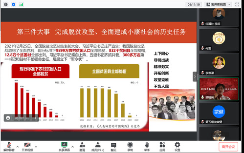 随后,顾晓英教授详细讲解党的二十大报告的15个部分,总结过去我国取得的伟大成就,重点说明全国人民在中国共产党的带领下完成了脱贫攻坚并全面建成小康社会的历史任务。