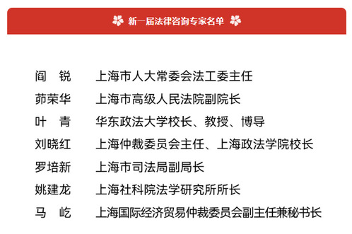 其中,7位新一届法律咨询专家是上海市7个最具有代表性的法治部门单位的领导同志,在各自业务领域具有权威性和影响力;30位法律顾问则属优中选强,政治素养过硬,专业水平一流。