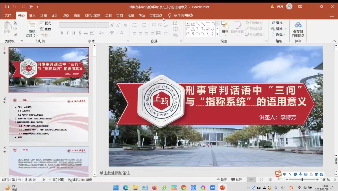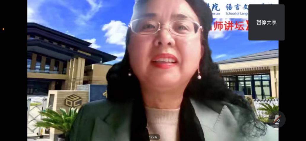 12月28日晚,由教务处、语言文化学院(国际交流学院)共同主办的“名师讲坛”第33讲开讲。我校李诗芳教授作题为“刑事庭审中‘指称系统’及‘三问’的语用意义”线上讲座。讲座由语言文化学院(国际交流学院)胡道华副教授主持,二百多名师生在线参与。