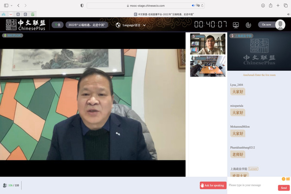 1月3日,经教育部中外语言交流合作中心批复,我校承办的第三期“云端相遇,走进中国”项目在中文联盟平台顺利开营。校长刘晓红在开营仪式上致辞并宣布正式开营,共有来自26个国家的四百多名国际学生注册参加。