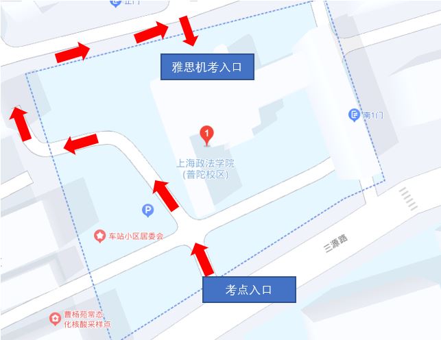考点坐落于上海市普陀区,地处市中心,交通四通八达,紧邻上海西站,方便上海市内及外地学子前来参加考试。