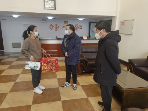 夏小和、郑少华一行来到招待所,为留校学生赠送春节慰问品,并同学生亲切交流,了解其假期学习和生活情况,嘱咐学生合理安排时间,注意放松休息,度过一个欢乐祥和的春节。校领导叮嘱有关部门务必做好假期值班值守和相关工作,为留校师生提供良好的服务保障。