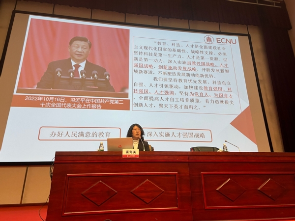 2月15日上午,华东师范大学马克思主义学院党委副书记崔海英作题为“坚守教育初心,引领学生成长”的专题讲座。下午,上海戏剧学院团委副书记李宗禹作“辅导员工作方法与艺术”的经验分享。各小组围绕“学习贯彻党的二十大精神,全面落实立德树人根本任务”展开讨论。