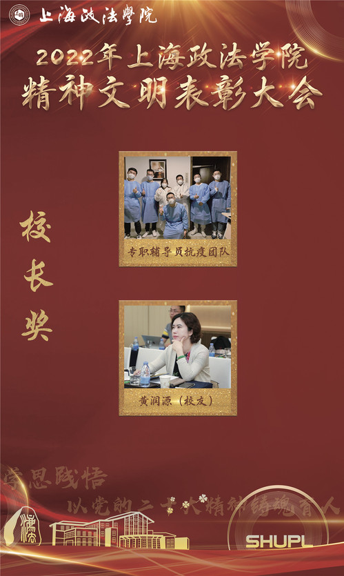 “校长奖”作为学校的最高荣誉,用以表彰一年来在各自领域作出重要贡献的各界上政人,激励广大师生守正创新潜心治学,勇毅前行勇攀高峰。