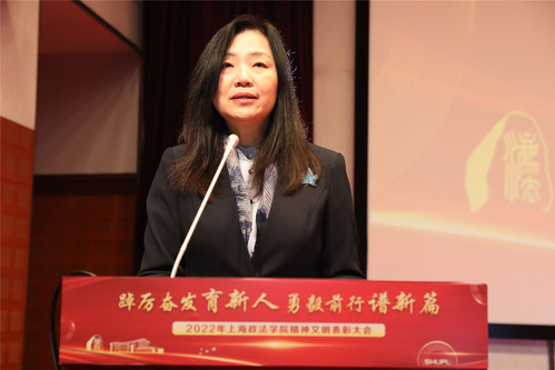 校长刘晓红代表学校党政班子向获得表彰的优秀个人和先进集体表示热烈祝贺,向在学校精神文明创建工作中做出积极贡献的全校师生和关心支持学校发展的广大校友、各界人士表示衷心感谢。她指出,过去的一年,面对严峻复杂的疫情形势,全体上政人众志成城、同心战疫,勤于改革创新、敢于攻坚克难、勇于争先创优,扎实推进事业发展,取得多项亮眼的成绩,以实际行动迎接党的二十大胜利召开。