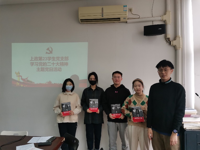 2月28日,上政第23学生党支部开展学习党的二十大精神主题党日活动,学习会由党支部书记徐轶凡主持,全体学生党员参加学习。