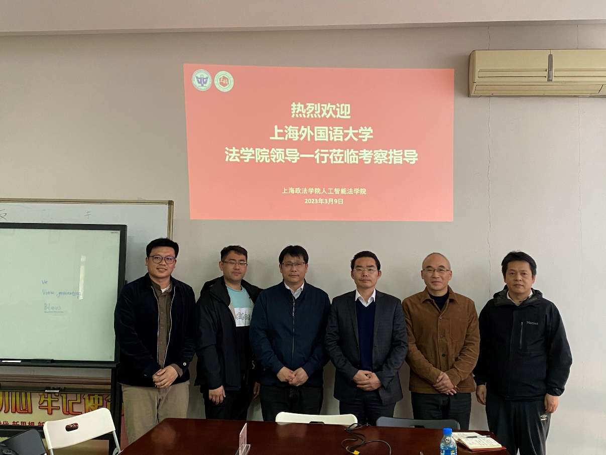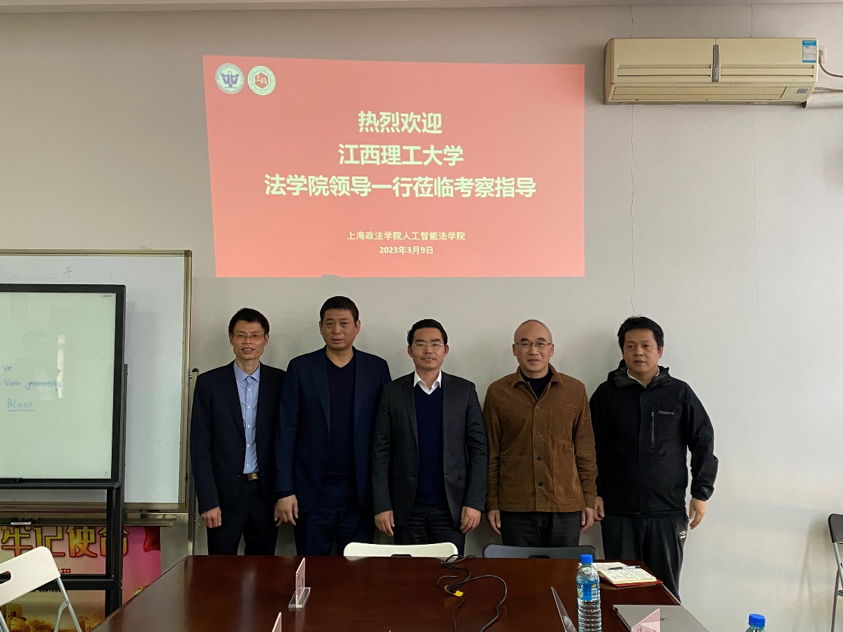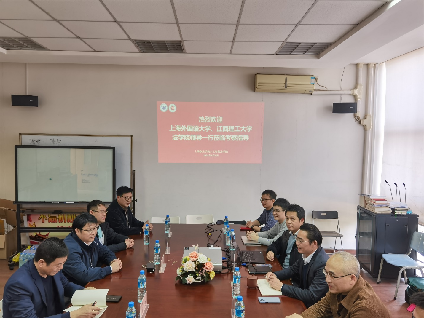 3月9日下午,上海外国语大学法学院院长张海斌、江西理工大学法学院院长项波一行来到人工智能法学院调研考察。党总支书记彭辉、院长杨华、副院长黄芹华以及教职工代表出席调研座谈会。