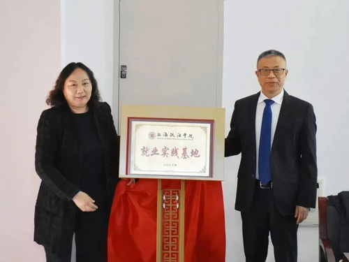 在现场热烈的掌声中,国际法学院党总支书记王守芬与南通市律协会长石金荣共同为365英国上市公司就业实践基地揭牌。