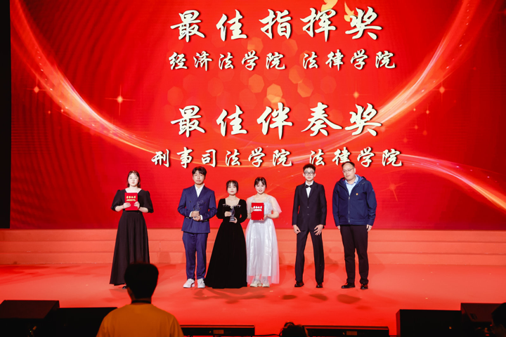 经过激烈的角逐,法律学院代表队荣获本次歌会一等奖,经济管理学院、经济法学院代表队获得二等奖,刑事司法学院、语言文化学院、政府管理学院代表队获得三等奖,警务学院、国际法学院、人工智能法学院、纪录片学院、马克思主义学院代表队获得优胜奖,经济法学院、法律学院获得最佳指挥奖,刑事司法学院、法律学院获得最佳伴奏奖。