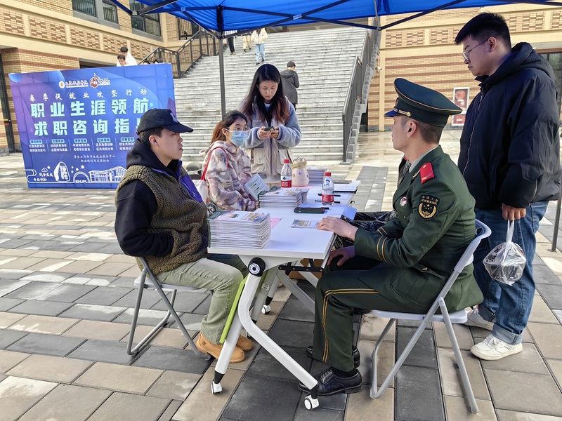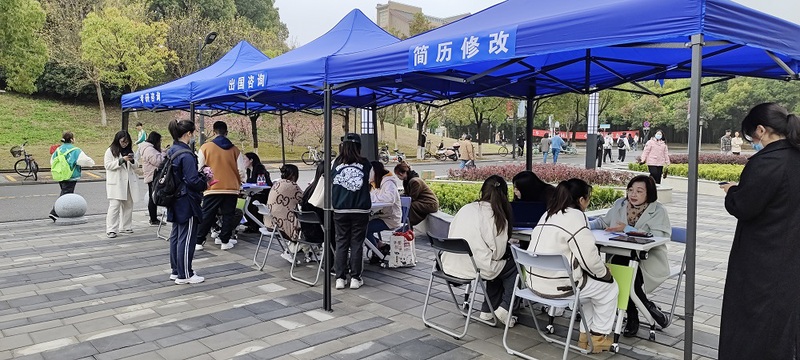 3月21日下午,我校在成德楼广场举办2023年春季促就业攻坚行动——“职业生涯领航·求职咨询指导”活动。学生工作部部长丁永建、副部长柯心,经济法学院党总支副书记叶卉到场指导。学生就业服务中心邀请前程无忧职场导师徐凤英、经济法学院辅导员汪雪苑、上海纪录片学院辅导员张勤勤、校征兵工作站、青年中心等专家老师现场答疑,吸引约两百余名学生前来咨询。