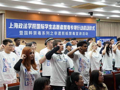 为筑牢高校抵御毒品渗透的安全防护网,发挥国际青年促进传播禁毒声音的积极作用,我校积极吸纳国际学生加入学校禁毒志愿者队伍,打造上政国际志愿者联盟。3月31日下午,学校在汇知楼107会议室举行国际学生志愿者禁毒专项行动启动仪式。市委政法委毒品预防处副处长郑雨清、市教委后勤保卫处四级调研员尹捷、夏阳强制隔离戒毒所所长陈立文、上海市禁毒志愿者协会常务副秘书长乔坚等莅临学校指导,校党委副书记刘刚及党委宣传部、学生工作部、留学生工作办公室、校团委、刑事司法学院的相关领导、老师出席活动。