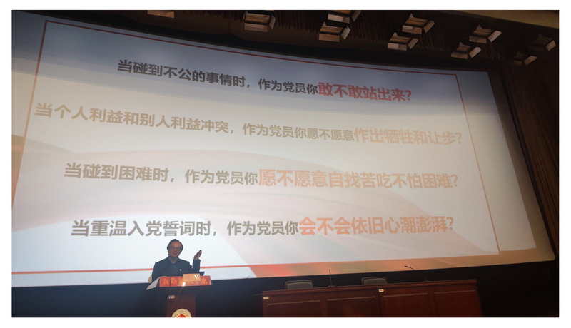 华东理工大学马克思主义学院副院长徐国民教授为学员作“以中国式现代化全面推进中华民族伟大复兴”专题党课,讲述了过去五年的工作成就和新时代十年的伟大变革,重点分析了三个务必、五个必由之路和六个必须坚持等重要概念,并深刻剖析了中国式现代化的重要内涵,告诫学员牢记空谈误国、实干兴邦,为全面推进中华民族伟大复兴而团结奋斗。