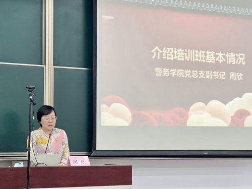 周欣从课程设置、培训内容以及学员分组三个方面简要介绍了培训班基本情况。警务学院21121班学生崔溪桐作为学员代表进行了发言,并带领全体学员作出郑重承诺。