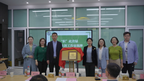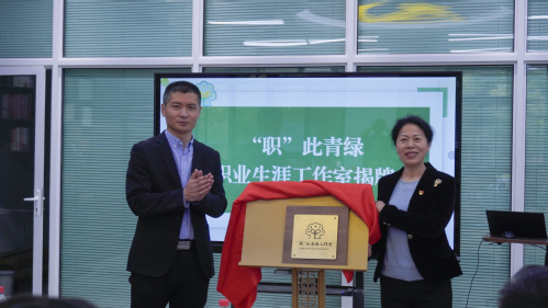 丁永建和姚善英共同为“职”此青绿职业生涯工作室揭牌。