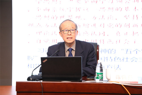 开班仪式结束后,上海交通大学讲席教授陈锡喜应邀作“把握好习近平新时代中国特色社会主义思想的世界观和方法论”专题辅导报告,报告围绕“蕴涵在习近平新时代中国特色社会主义思想中的马克思主义世界观和方法论”“贯穿在习近平新时代中国特色社会主义思想中的立场观点方法”和“贯穿习近平新时代中国特色社会主义思想立场观点方法的‘六个必须’具体要求”三个方面内容展开高屋建瓴、深入浅出地讲授,既有理论的高度,又有实践的深度,对我校党员师生准确把握习近平新时代中国特色社会主义思想的世界观和方法论的精髓要义,坚持好、运用好贯穿其中的立场观点方法起到了重要指导作用。