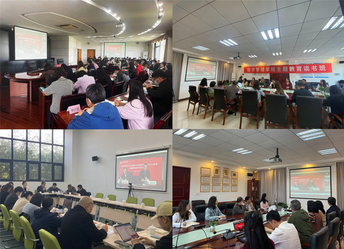 学校二级党组织师生党员在各分会场通过观看直播的方式参加学习。当天下午,主题教育读书班学员围绕首场专题辅导内容分组展开了集中研讨。