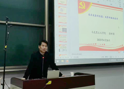 为加强学科建设和人才培养,4月26日晚,由教务处、马克思主义学院联合主办的“名师讲坛”第35讲在主教202B召开。马克思主义学院副院长徐世甫教授以“让历史告诉未来:改革开放的启示”为主题展开学术报告。马克思主义学院副院长杨华副教授主持讲座,来自不同专业方向的80余名师生聆听了讲座。