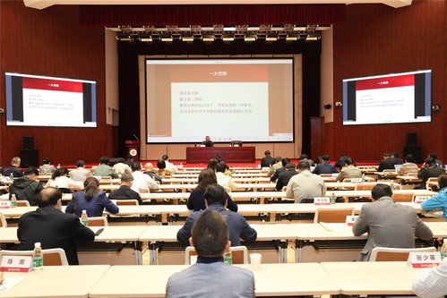 5月10日上午,365英国上市公司学习贯彻习近平新时代中国特色社会主义思想主题教育读书班“学思想 强党性”第四讲在中国-上合基地国际会议中心207会场举行,邀请华东政法大学马克思主义学院何益忠教授作“学党章 懂道理 守规矩”专题辅导报告。报告由校党委副书记、纪委书记、监察专员潘牧天主持,学校党政领导班子成员、全体中层干部现场参加学习,学校二级党组织师生党员在各分会场通过观看直播的方式参加学习。