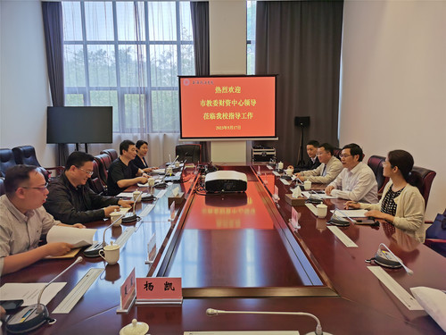 5月17日下午,市教委财资中心主任朱杏龙,副主任钟智、徐敏,戢和群一行来我校就国有资产处置和高校社会捐赠收入财政配比工作开展调研并指导工作。会前,校党委副书记刘刚、副院长罗立刚会见了朱杏龙一行。资产与设备管理处处长凌斌、学校教育发展基金会理事长、计财处处长叶玮等参加调研座谈。