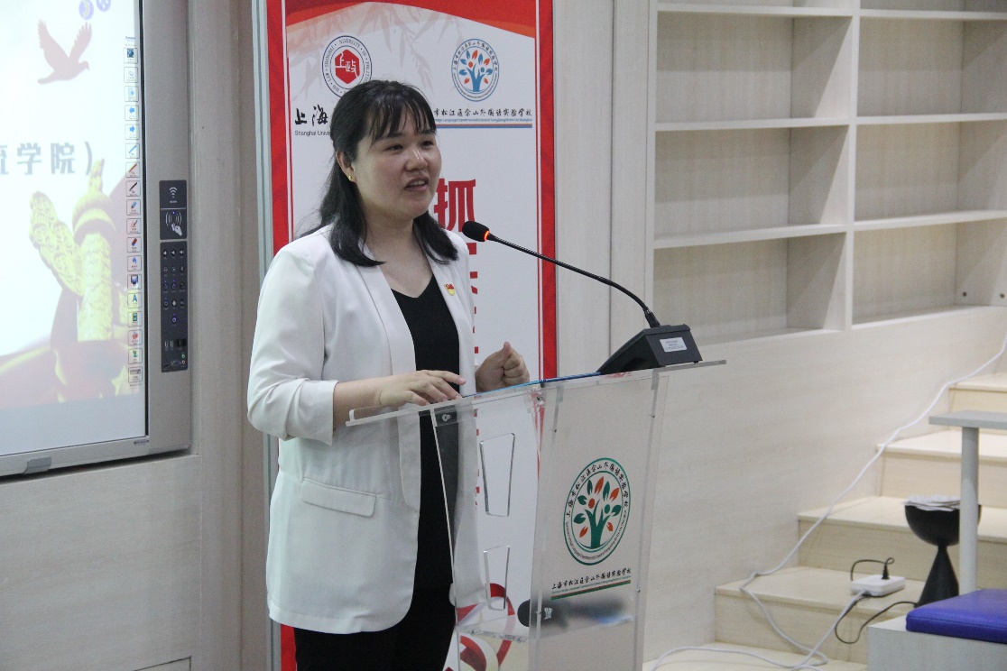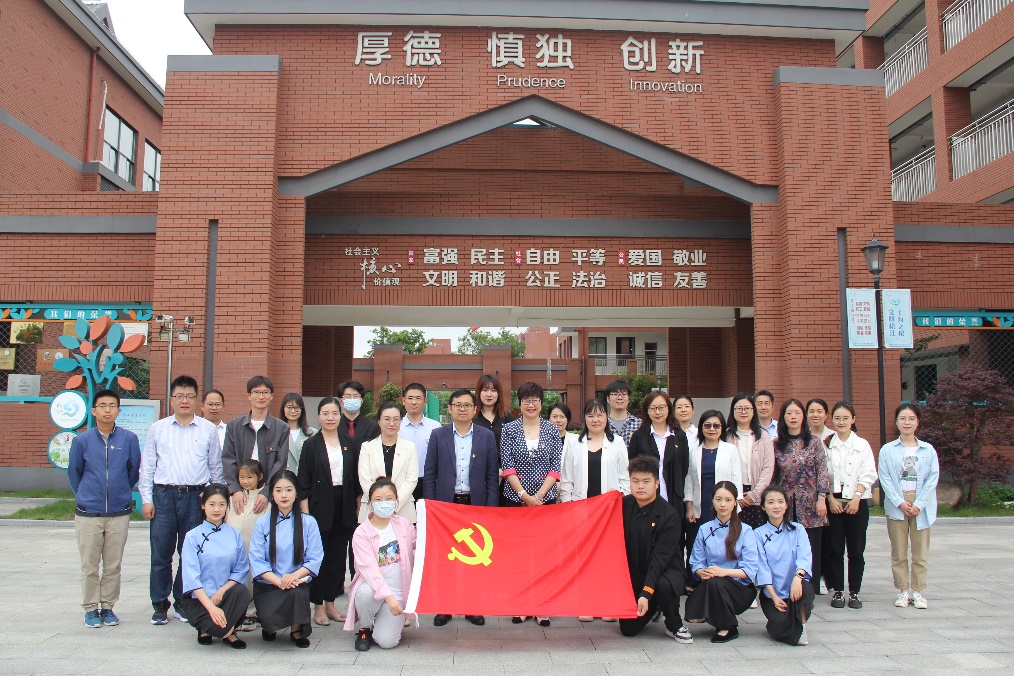 以合作共建促发展,持续推进主题教育走深走实。5月19日下午,党委组织部和语言文化学院(国际交流学院)赴松江区佘山外国语实验学校开展“抓实主题教育,赋能教育发展”结对共建活动。校党委常委、组织部统战部部长王静,语言文化学院(国际交流学院)党总支书记魏传成,佘山外国语实验学校党总支副书记、校长李燕华,以及结对单位师生党员、入党积极分子代表等参加活动。
